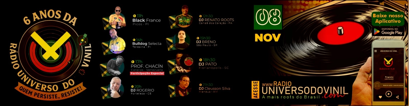 Somos a Rádio Universo do Vinil que surgiu em 2019, após a criação da Equipe Universo do Vinil. Sediada em Florianópolis-SC, a mesma tem como principal objetivo a propagação da música popular jamaicana, trazendo junto à isso muita interatividade e descontração. Que a música reggae chegue aos 4 cantos do mundo através da RUV! Bless All!